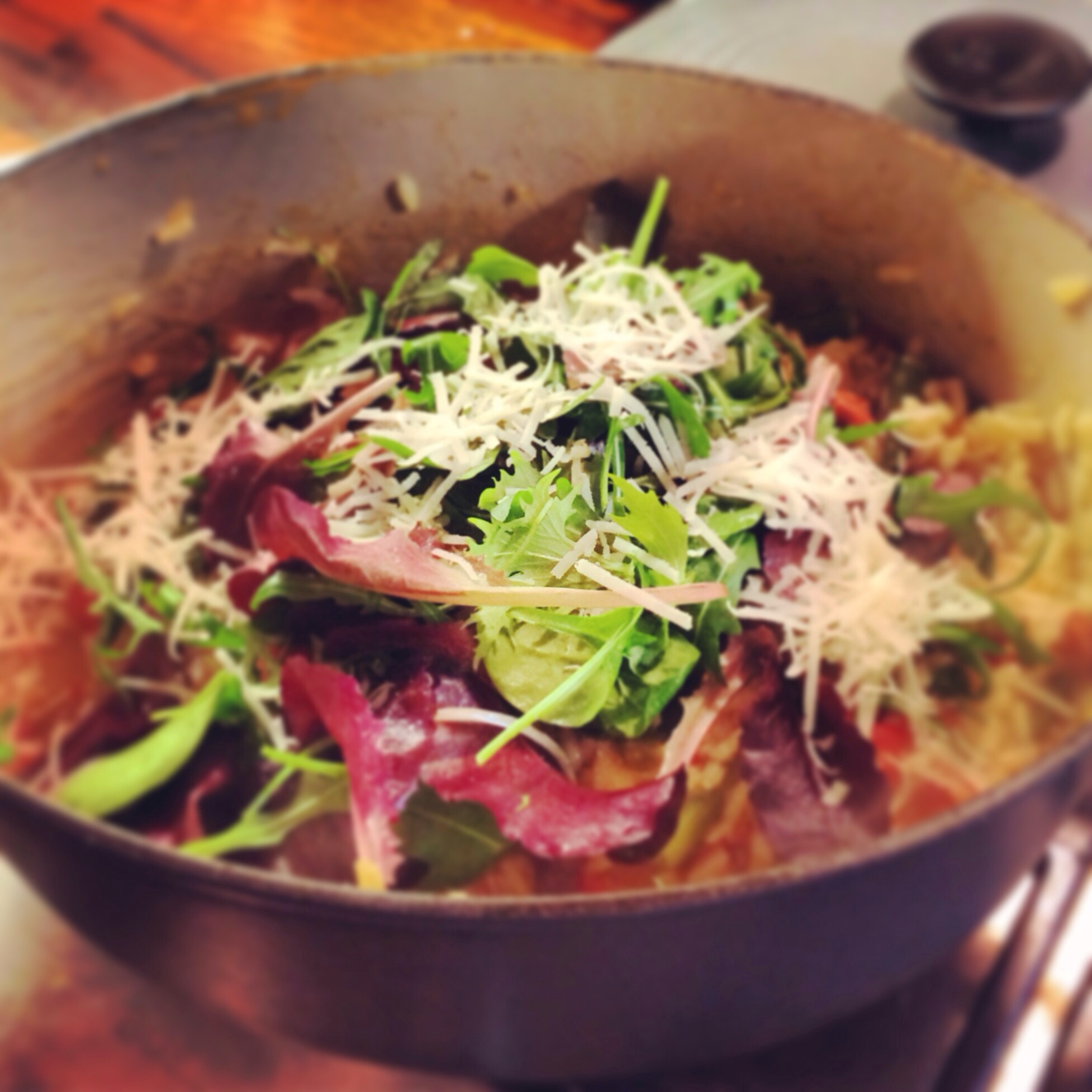 Step 5 – Stir in some rocket leaves. Mmmm Cheffy.