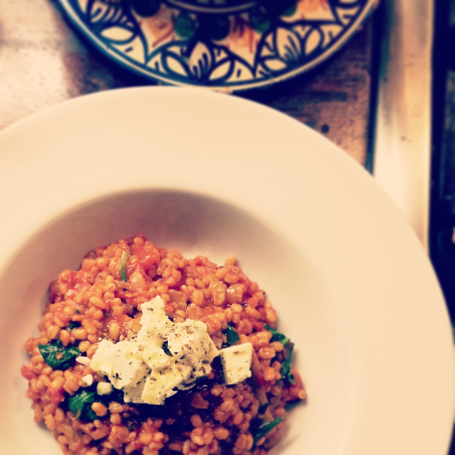 5. When the risotto is ready divide between bowls and sprinkle with the feta and fresh oregano if you managed to get it – I didn’t.