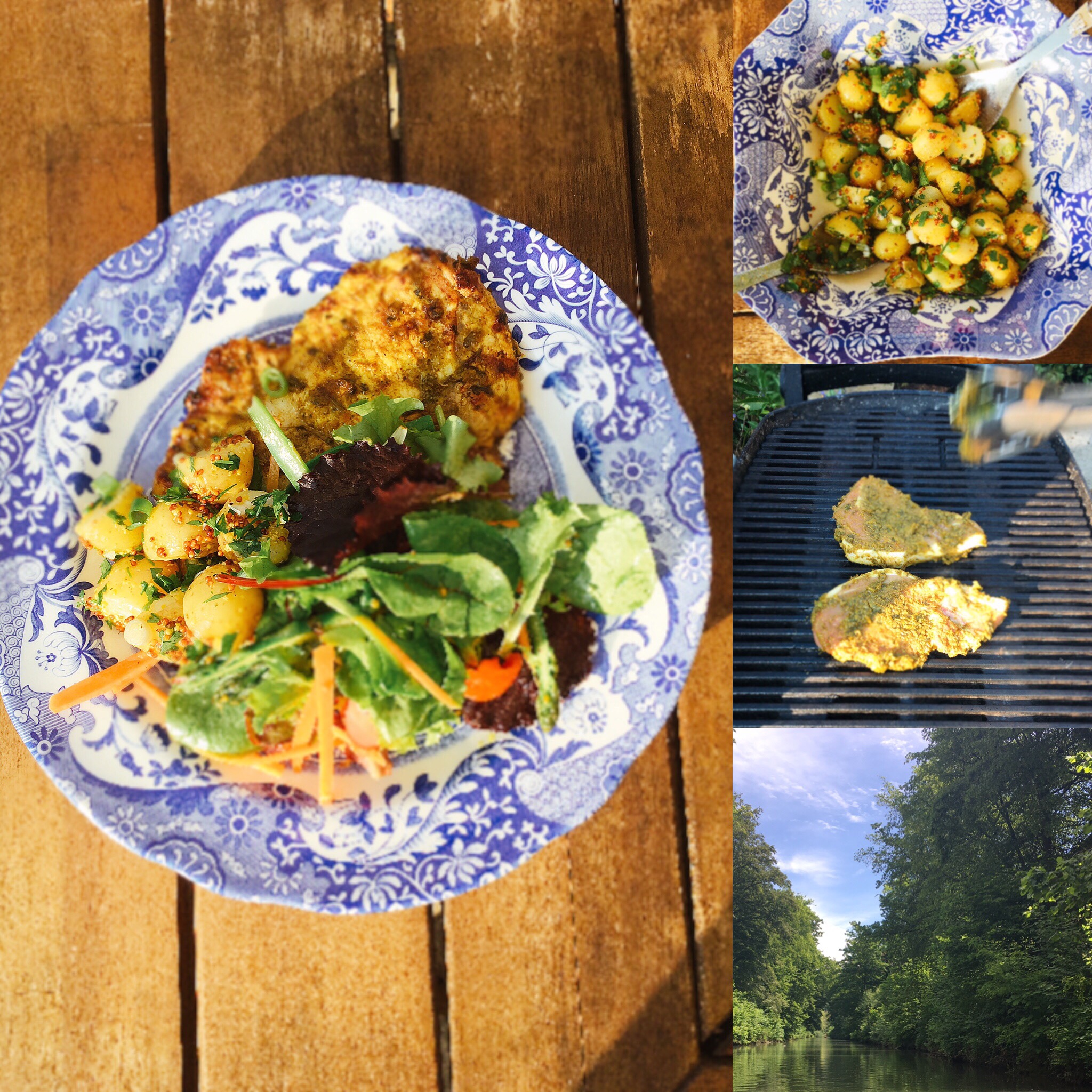 This can be done on the BBQ or on the grill or skillet. You will see that the sides are very in-keeping with weight watching needs hurrah! This bad boy should be about 10 points (I spent 9 on wine whilst I was BBQ-ing, error…) chermoula is ideal to marinade fish or any meat really. It’s North African in origin so lots of nice recipes are possible using it.